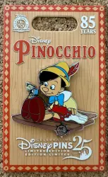 Pinocchio and Jiminy Cricket is a Limited Edition (LE) 2000 pin from the Pinocchio 85th Anniversary pin series. It was originally released on , 2025 and was available from Multiple Sources (WDW, DLR, etc.).