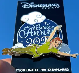 Bonne année 2025 Peter pan slider is a Limited Edition (LE) 700 pin from the New Year's Eve/Day pin series. It was originally released on , 2024 and was available from Disneyland Resort Paris .