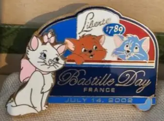 July 14, 2002 Marie, Toulouse and Berlioz is a Limited Edition (LE) 4500 pin from the Bastille Day pin series. It was originally released on , 2002 and was available from Multiple Sources (WDW, DLR, etc.).
