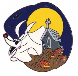Zero With His Doghouse in Front of a Full Moon is an Open Edition pin from the Nightmare Before Christmas pin series. It was originally released 2003 and was available from Multiple Sources (WDW, DLR, etc.).