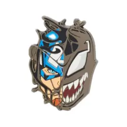 Captain America x Venom is a Limited Release pin from the Marvel Venom Symbiote Character Masks Blind Box pin series. It was originally released on , 2025 and was available from an Officially Licensed Disney trading pin vendor (see description for more information).