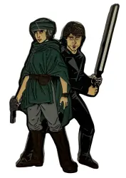 Pin features Luke Skywalker and Princess Leia