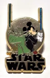 Yoda and Mickey with lightsabers is an Open Edition pin from the Star Wars pin series. It was originally released on , 2006 and was available from Disneyland Resort Paris .