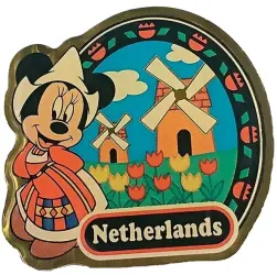 Netherlands Minnie Mouse is an Open Edition pin from the Morinaga World Travel Collection pin series. It was originally released on , 2001 and was available from an Officially Licensed Disney trading pin vendor (see description for more information).