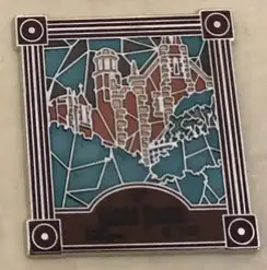Tokyo Disneyland is a Limited Edition (LE) 250 pin in the Haunted Mansion Pinbassador Inspirations: Around the World in 40 Years Stained Glass Set 4-pin set from the Haunted Mansion O'Pin House pin series. It was originally released on , 2009 and was available from Disneyland Resort .