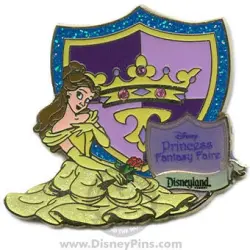 Belle - 2008 is an Open Edition pin from the Princess Fantasy Faire pin series. It was originally released on , 2008 and was available from Disneyland Resort .