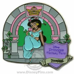 Jasmine is an Open Edition pin from the Princess Fantasy Faire pin series. It was originally released on , 2008 and was available from Disneyland Resort .
