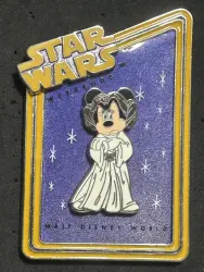 Minnie Mouse as Leia is a Limited Edition (LE) 1977 pin from the Star Wars Weekends 2011 pin series. It was originally released on , 2011 and was available from Walt Disney World .