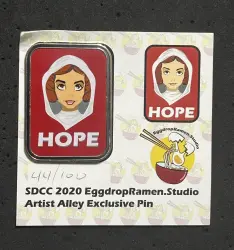 Leia: Hope is a pin. It was originally released 2020 and is an Unlicensed (Fantasy) pin, so therefore it is not allowed to be traded in the Disney Parks.