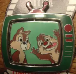 Chip and Dale is a Limited Edition (LE) 300 pin from the TV Spinner pin series. It was originally released on , 2012 and was available from Disney Studio Store Hollywood / Soda Fountain .