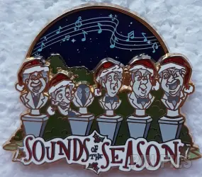 Haunted Mansion - Singing Busts is a Limited Edition (LE) 3000 pin from the Sounds of the Season pin series. It was originally released on , 2016 and was available from Disneyland Resort .