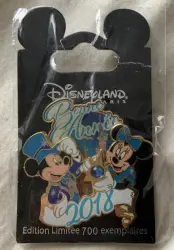 Bonne Année 2018 - Mickey & Minnie is a Limited Edition (LE) 700 pin from the New Year's Eve/Day pin series. It was originally released on , 2017 and was available from Disneyland Resort Paris .
