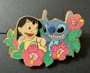 Lilo and Stitch Floral is a Limited Edition (LE) 500 pin from the Among Flowers pin series. It was originally released on , 2004 and was available from Disney Auctions .