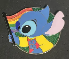 No H8 Stitch - glitter flag variant is a pin. It is an Unlicensed (Fantasy) pin, so therefore it is not allowed to be traded in the Disney Parks.