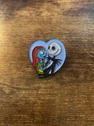 Pin features Jack Skellington and Sally from The Nightmare Before Christmas