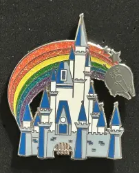 Millennium Falcon and Rainbow over Cinderella’s Castle is a pin. It is an Unlicensed (Fantasy) pin, so therefore it is not allowed to be traded in the Disney Parks.