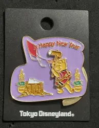 Pooh chopping wood Happy New Year is an Open Edition pin. It was available from Tokyo Disneyland Resort .