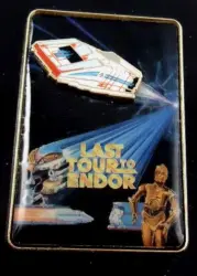 Last Tour to Endor is a Limited Edition (LE) 2000 pin from the Star Tours pin series. It was originally released on , 2010 and was available from an Officially Licensed Disney trading pin vendor (see description for more information).