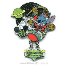 Stitch on Space Mountain is a Limited Edition (LE) 2500 pin from the 35 Magical Years at Walt Disney World pin series. It was originally released on , 2006 and was available from Walt Disney World .