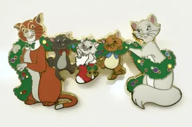 The Aristocats: Dutchess, Thomas O’Malley, Marie, Berlioz, Toulouse Hanging Garland is a Limited Edition (LE) 200 pin from the Christmas 2016 pin series. It was originally released on , 2016 and was available from Disney Studio Store Hollywood / Soda Fountain .