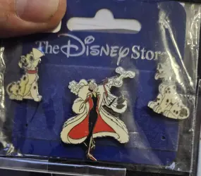 Cruella de Vil and 2 Puppies 3 Pin Set is an Open Edition pin from the 101 Dalmatians pin series. It was originally released on , 2001 and was available from Disney Store Japan .