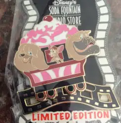 Peg, Pedro, & Bull is a Limited Edition (LE) 300 pin from the Ice Cream Train pin series. It was originally released on , 2013 and was available from Disney Studio Store Hollywood / Soda Fountain .