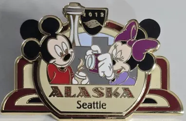 Alaska Summer 2012 Cruise: Mickey and Minnie in Seattle is a Limited Edition (LE) 1000 pin from the Disney Cruise Line Destinations: Alaska pin series. It was originally released on , 2012 and was available from Disney Cruise Line .