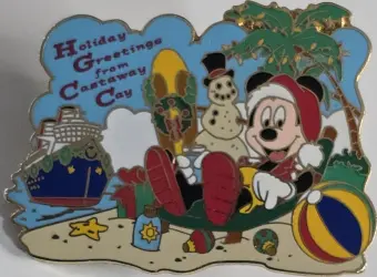 Holiday Greetings from Castaway Cay is a Limited Edition (LE) 500 pin from the Disney Cruise Line pin series. It was originally released on , 2003 and was available from Disney Cruise Line .