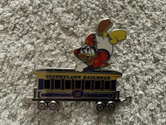 Donald Duck is a Limited Edition (LE) 600 pin from the Disneyland Paris 20th Anniversary - Disneyland Railroad Connecting Train pin series. It was originally released on , 2012 and was available from Disneyland Resort Paris .