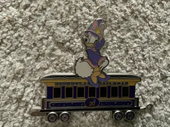 Daisy Duck is a Limited Edition (LE) 600 pin from the Disneyland Paris 20th Anniversary - Disneyland Railroad Connecting Train pin series. It was originally released on , 2012 and was available from Disneyland Resort Paris .