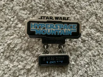 Star Wars– Hyperspace Mountain – 6 mai 2017 is a Limited Edition (LE) 3000 pin from the Star Wars pin series. It was originally released on , 2017 and was available from Disneyland Resort Paris .