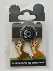 Chip and Dale Carrying Camera is a Limited Edition (LE) 700 pin from the PhotoPass Day Collection pin series. It was originally released on , 2021 and was available from Disneyland Resort Paris .