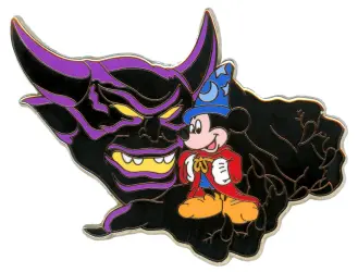 Pin features Chernabog , Mickey Mouse and Sorcerer Mickey from Fantasia