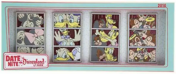 Photobooth Strip Boxed Set - Full Set is a Limited Edition (LE) 300 4-pin set from the Date Nite at Disneyland Park pin series. It was originally released on , 2016 and was available from Disneyland Resort .