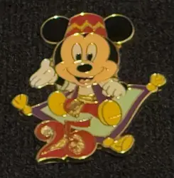 25th Anniversary - Magic Carpet - Mickey is a Limited Release pin from the Tokyo DisneySea Abu's Bazaar Game Prizes pin series. It was originally released on , 2008 and was available from Tokyo Disneyland Resort .
