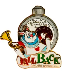 White Rabbit, Fall Back, Daylight Savings Time is a Limited Edition (LE) 1500 pin from the Daylight Savings Time pin series. It was originally released on , 2003 and was available from Disneyland Resort .