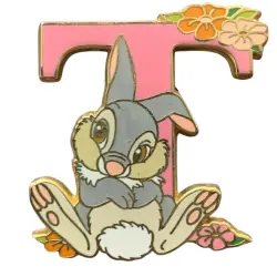 Letter T - Thumper is an Open Edition pin from the Disney PALS Lucky Draw Initials / Alphabet Mystery Collection pin series. It was originally released on , 2005 and was available from Disney Store Japan .