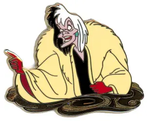 Cruella de Vil is a Limited Edition (LE) 400 pin from the Halloween 2010 Villains Mystery pin series. It was originally released on , 2010 and was available from Disney Store US .