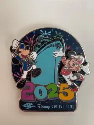 Mickey and Minnie - 2025 New Year Spinner is an Open Edition pin from the Disney Cruise Line pin series. It was originally released on , 2025 and was available from Disney Cruise Line .