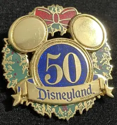 50th Anniversary Christmas Wreath is a Limited Edition (LE) 3000 pin from the DLR Cast Member Pin of the Month pin series. It was originally released on , 2005 and was available from Disneyland Resort .