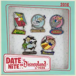 Attraction Vehicles Boxed Set - Full Set is a Limited Edition (LE) 150 5-pin set from the Date Nite at Disneyland Park pin series. It was originally released on , 2016 and was available from Disneyland Resort .