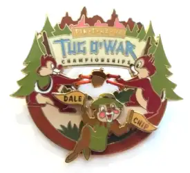 Tug O' War Championship is a Limited Edition (LE) 500 pin from the Camp Pin-e-ha-ha Pin Event pin series. It was originally released on , 2007 and was available from Disneyland Resort .