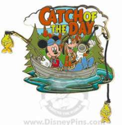 Catch of the Day Dangle is a Limited Edition (LE) 500 pin from the Camp Pin-e-ha-ha Pin Event pin series. It was originally released on , 2007 and was available from Disneyland Resort .