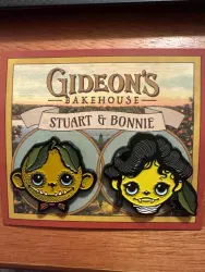 Stuart & Bonnie is a Limited Edition (LE) 3000 pin from the Gideon's Bakehouse pin series. It was originally released on , 2023 and is technically a Miscellaneous Non-Disney pin, so while being considered affiliated with Disney, it is not allowed to be traded in the Disney Parks.