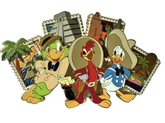 Pin features Donald Duck , Jose Carioca and Panchito Pistoles from The Three Caballeros and Saludos Amigos