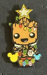 Baby Groot decorated as Christmas Tree is a pin. It is an Unlicensed (Fantasy) pin, so therefore it is not allowed to be traded in the Disney Parks.