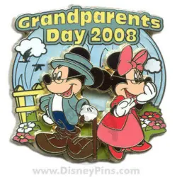 Grandparents Day 2008 - Mickey & Minnie is a Limited Edition (LE) 1500 pin from the Grandparents day pin series. It was originally released on , 2008 and was available from Disneyland Resort .