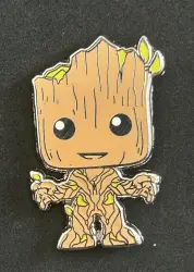 Baby Groot with Leaves is a Limited Edition (LE) 50 pin. It is an Unlicensed (Fantasy) pin, so therefore it is not allowed to be traded in the Disney Parks.