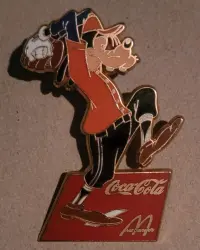 Coca-Cola: Goofy Pitching Baseball is an Open Edition pin from the European Bootleg pin series. It was originally released on , 1990 and is an Unlicensed (Fantasy) pin, so therefore it is not allowed to be traded in the Disney Parks.
