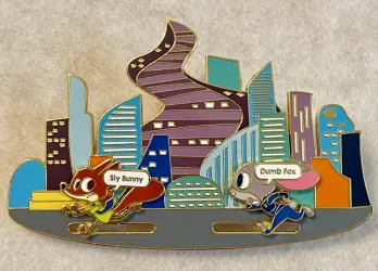 Zootopia Judy & Nick Jumbo Slider Disney is a Limited Edition (LE) 800 pin. It was available from Loungefly .
